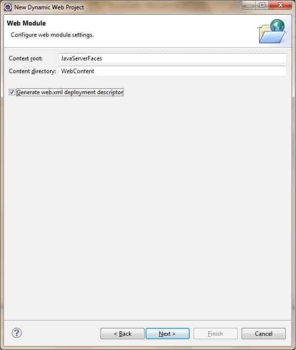 - Select Generate web.xml deployment descriptor checkbox.
