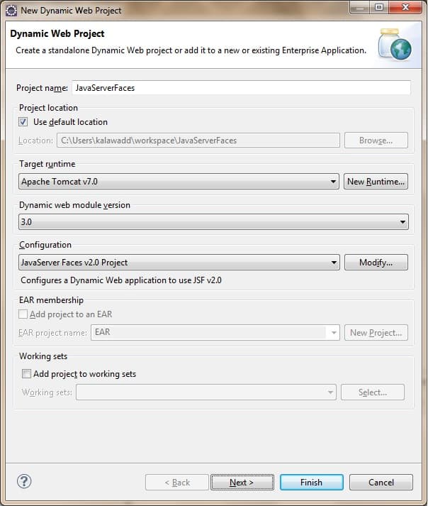 Creating JavaServerFaces Project in Eclipse